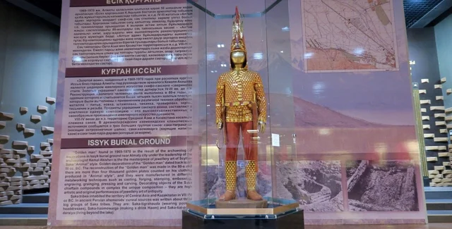 Золотий обладунок воїна V століття до н. е. є головним символом незалежності Казахстану. Цей артефакт, відомий як "Золота людина", знайшли у гробниці Сака поблизу поселення Іссик, приблизно за 60 км на схід від Алмати, пише Arkeonews.
