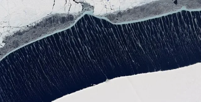 Супутниковий знімок 2021 року зафіксував рідкісне явище — на поверхні океанічного каналу, що розділяє шельфовий льодовик Ронне та ділянку багаторічного морського льоду в Антарктиді, з'явилися загадкові рідкісні тонкі смуги льоду, пише Live Science.