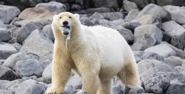 Тепер організатори премії "Фотограф року океану" 2024 року представили похмуре фото, що закарбувало білого ведмедя з пластиком, який звисає з пащі. Знімок увійшов до шорт-листа премії й був зроблений на острові Кіперт на архіпелазі Шпіцберген біля берегів Норвегії фотонауралістом Селією Куялою. Організатори конкурсу заявляють, що фото слугує похмурим нагадуванням того, що навіть безлюдні райони Арктики не вільні від всеосяжного пластикового забруднення.
