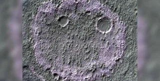 Знімок марсіанського "смайлика" зробив супутник ЄКА ExoMars Trace Gas Orbiter, який займається пошуками ознак життя на Червоній планеті. На його знімку видно відкладення хлоридної солі на посушливій марсіанській поверхні. Аналіз соляних відкладень може пролити світло на давній клімат, геологію і потенційну населеність планети.