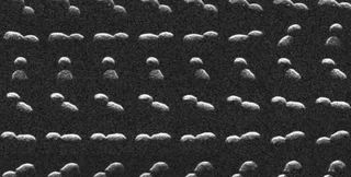 Знімки були зроблені за допомогою Голдстоунського радара Сонячної системи. На них видно, що астероїд розміром з хмарочос має форму арахісу або ж сніговика. Річ у тім, що це не один, а два астероїди, які були притягнуті власною гравітацією, а потім буквально злиплися один з одним. Серед інших відомих контактних астероїдів є об'єкт Selam — дводольний супутник, який обертається навколо астероїда Дінкінеш. Він розташований у поясі між Марсом і Юпітером.