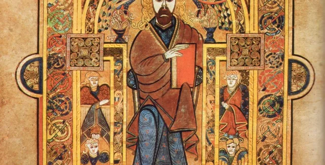 Вважається, що Келлська книга створена у 806 році на острові Іона в Шотландії, а після набігу вікінгів її перенесли до монастиря в Келлсі, графство Міт. Ілюстрації манускрипту, який є передусім копією чотирьох Євангелій разом із "канонічними таблицями", дуже складні, що свідчить про те, що він призначений для церемоніального показу, а не для щоденного читання. Текст, однак, недосконалий, з пропусками та повторюваними фрагментами, що вказує на увагу, яку приділяли саме його ілюстраціям, а не тексту.