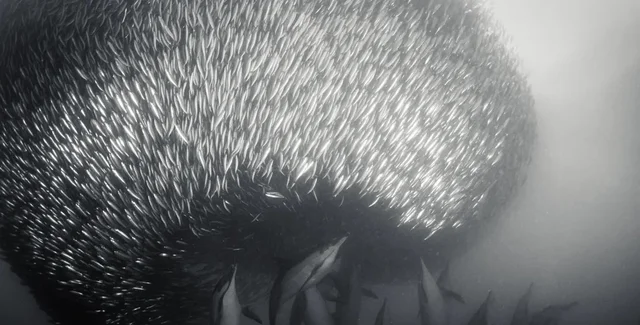 Втім, у такого великого переміщення сардин в океані є один великий недолік: така міграція не може залишитися непоміченою. У результаті починається шалене годування: на здобич злітаються морські хижаки, включно з дельфінами та акулами, а також морські птахи й морські котики.