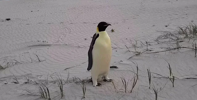 Очевидці розповідають, що імператорський пінгвін, опинившись на пляжі, намагався ковзнути на животі, вважаючи, що навколо сніг, але лише уткнувся головою в пісок. Після цього птах піднявся, обтрусився і продовжив свій шлях.