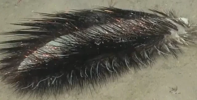 На відео чітко видно, як щетинки поліхети світяться і переливаються, коли він полізе по морському дну.