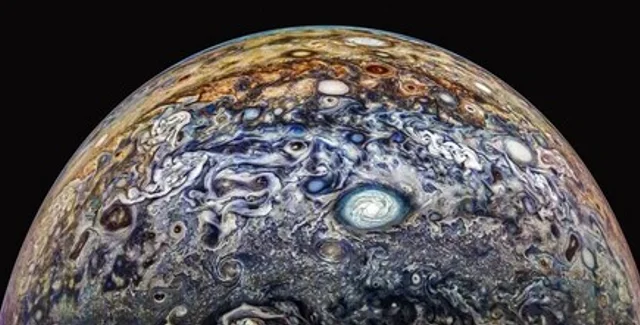 На нових знімках добре видно унікальні атмосферні шторми, які представлені у вигляді завихрень