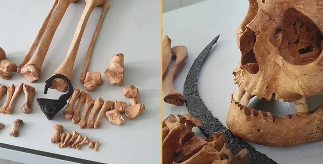 "Її знайшли з лезом серпа на шиї та замком на великому пальці лівої ноги. Такий незвичний метод поховання мав завадити померлій повстати з могили та тероризувати село", — каже шведський художник-криміналіст Оскар Нільссон, який створив реконструкцію.