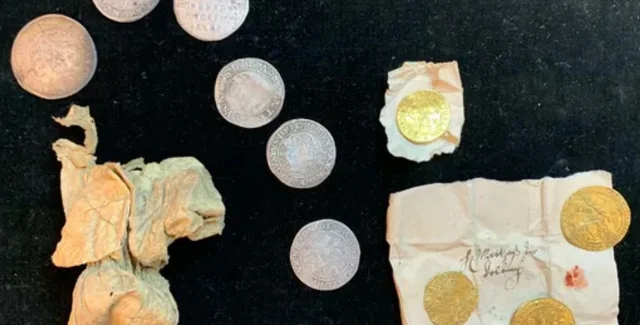 У схованці виявили золоту монету, відому як "золотий ангел", золоті дукати і подвійні дукати. Також були знайдені срібні монети, відомі як талери, напівталери та четвертіталери та сотні пенні.