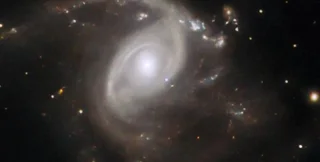 На новій фотографії космічного телескопа Хаббл видно спіральну галактику LEDA 22057, де було виявлено вибух рідкісної наднової. Закручена маса спіральної галактики зосереджена навколо овальної області ядра з білим світінням, з якого виходять спіральні рукави, що згинаються.