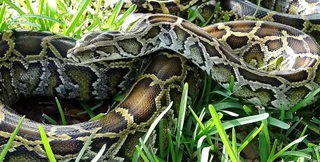 Йдеться про бірманських пітонів (Python bivittatus) — вид змій, який став інвазивним для Флориди близько 40 років тому, але відтоді буквально заполонив штат. Для боротьби з цим інвазивним видом влада Флориди спонсорує популярний щорічний конкурс полювання, щоб скоротити популяцію бірманських пітонів.
