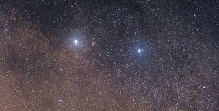 Альфа Центавра AB — яскрава зірка ліворуч. Проксима Центавра обведена червоним колом | Фото: Wikipedia