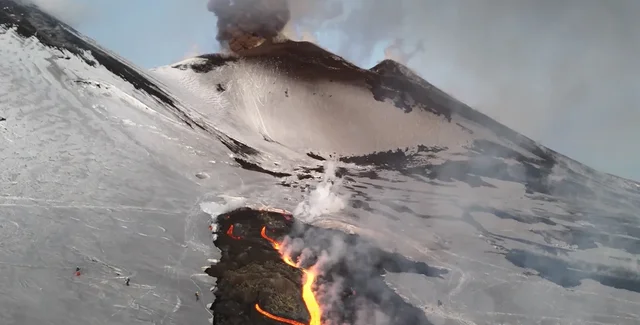 Гора Етна — найвищий і найактивніший вулкан у Європі, і тепер вона продемонструвала свої звичайні, але вельми дивовижні трюки, вистрілюючи в повітря вулканічним попелом і уламками. На страхітливих кадрах видно, як лава стікає засніженими схилами вулкана, випалюючи все на своєму шляху, пише IFLScience.
