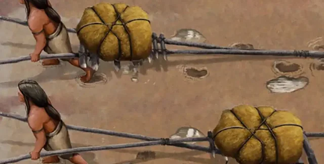 Автори дослідження вважають, що незвичайні сліди на землі залишили люди, які тягнули за собою шматки дерева, навантажені товарами. Такий вид примітивного транспортного засобу відомий як волокуша.