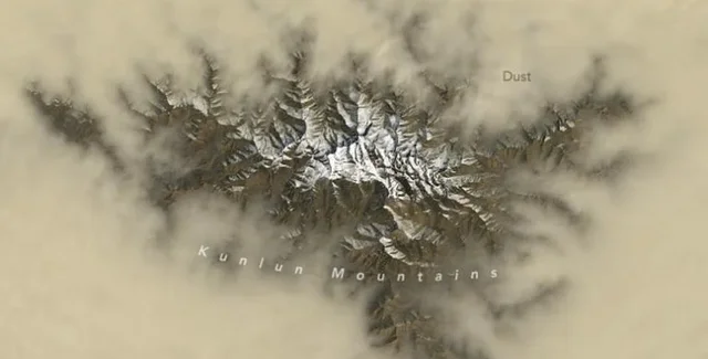 З приходом весни в Таримській улоговині в Китаї настає сезон сильних пилових бур, які підживлюються сухими ландшафтами та мінливими вітрами. Супутники космічного агентства NASA зробили приголомшливі знімки пилових шлейфів, що підіймаються і закручуються в гірських долинах.