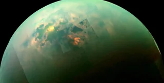 Титан є найбільшим із 274 супутників Сатурна. Його густа атмосфера створює багато погодних особливостей, які схожі на земні. На Титані є хмари, вітер і дощ, а також річки, озера і моря. Але вони складаються не з води, а з рідкого метану та етану.