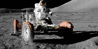 Астронавт Юджин Сернан місії "Аполлон-17" на місячному автомобілі переміщався поверхнею Місяця 1972 року | Фото: solar-system