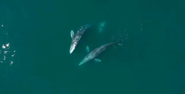 Ще 2023 року, спостерігаючи за міграцією сірих китів біля узбережжя південної Каліфорнії, власник компанії зі спостереження за китами Gone Whale Watching із Сан-Дієго Доменік Біаджині зняв із дрона дивовижну поведінку двох самців сірих китів.