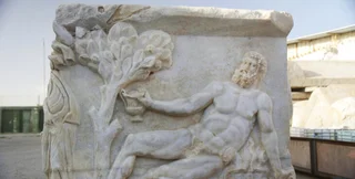 Саркофаг, який, як вважають, датується II або III століттям н. е., доставили до лабораторії консервації, де експерти ретельно відновили його фрагменти. Рельєф зображує Діоніса, бога вина, оточеного менадами, сатирами та іншими міфологічними персонажами.