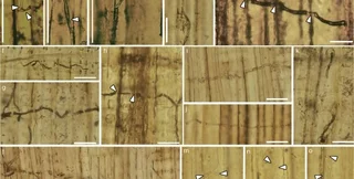Учені провели мікроскопічний аналіз, який показав, що викопні гіфи мають темний колір — це вказує на наявність пігментації. Зазначимо, що пігментація — ключова особливість сучасних грибів синяви, відповідальних за зміну кольору деревини. Автори дослідження також виявили, що гриби синьо-плямистості не мають ферментивної здатності розкладати деревні структури. Замість цього їхні гіфи механічно руйнують клітинні стінки деревини за допомогою штифтів, що проникають.