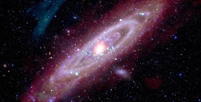 Галактика Андромеди, також відома як M31, є найближчою спіральною галактикою до Чумацького Шляху. Це також найближча велика галактика. Вона розташована на відстані 2,5 млн років від нас і раніше дала змогу астрономам зрозуміти структуру та еволюцію нашої власної галактики. Це зробити складно, адже Земля розташована всередині Чумацького Шляху. Вчені з NASA представили нову складову фотографію галактики Андромеда, створену за допомогою п'яти різних видів світла, об'єднаних разом. Таким чином виходила максимально деталізована фотографія цієї знаменитої спіральної галактики, яка повинна врізатися в Чумацький Шлях, пише Gizmodo.