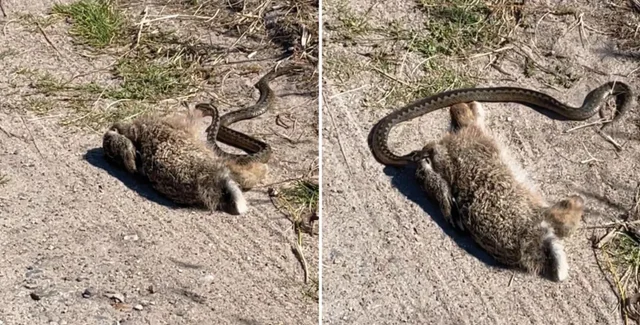 Найголодніша гадюка у світі хотіла з'їсти зайця: він був у 10 разів більшим за саму змію (відео)