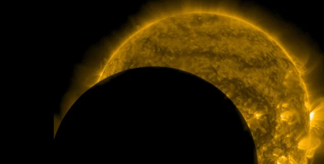 Апарат Solar Dynamics Observatory спостерігав, як Місяць проходив між зондом NASA і Сонцем, і коли Земля пройшла між космічним апаратом і нашою зіркою.