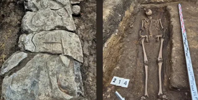 Археолог Сільвія Куржиньска каже, що вони виявили велику вапнякову надгробну плиту, на якій було вирізьблене зображення лицаря на повний зріст в обладунках з мечем і щитом. Надгробна плита завдовжки близько 150 сантиметрів, виготовлена з вапняку, імпортованого з Готланда (Швеція). Це був дорогий матеріал, а тому похована людина точно мала знатне походження, кажуть науковці.