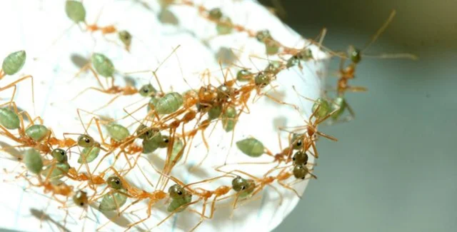 Чемпіонами колективних дій були визнані мурахи — вони бездоганно координують складні завдання в багатомільйонних колоніях. І серед усіх видів мурах мурахи-ткачі (Oecophylla smaragdina) є яскравим прикладом.