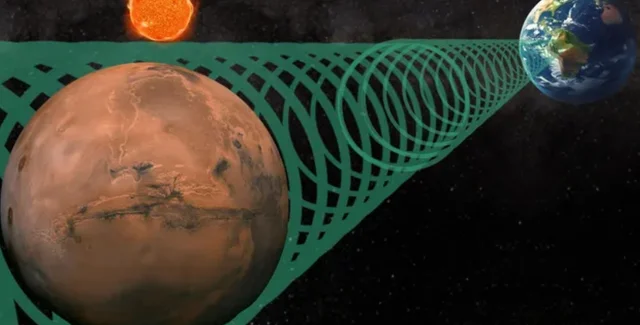 На ілюстрації показано сигнал, що проходить між Землею і Марсом | Фото: space.com