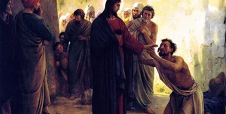 Зазначимо, що біблійне диво, в якому Ісус повернув зір сліпому, описано в Євангелії від Іоанна. Згідно з текстом, Христос плюнув на землю, а потім помазав очі сліпого сумішшю слини та бруду. Далі він відправив сліпого вмитися в купальню Сілоам — коли чоловік повернувся, він прозрів.