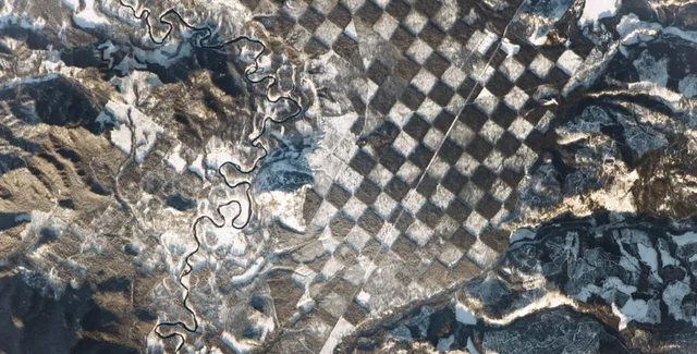 Знімок астронавта, зроблений у 2017 році, на якому зображено незвичайний картатий візерунок на поверхні планети, що оточує річку Айдахо на південь від кордону з Канадою, привернув увагу громадськості. Зображення виглядає так, ніби хтось розклав на поверхні планети величезну "шахову дошку", пише Live Science.