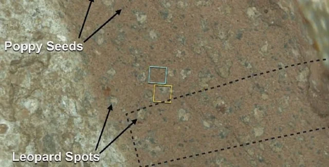 У цьому камені були знайдені так звані "макові зерна" або "плями леопарда". Ці плями розміром близько одного міліметра, вони оточені чорними кільцями. Подальший аналіз за допомогою інструментів марсохода показав, що ці темні кільця складаються із заліза і фосфатів. На Землі обидві ці речовини можуть утворюватися в результаті хімічних процесів, керованих живими мікробами.
