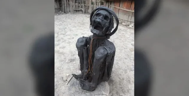 Подібні традиції збереглися донині серед таких груп, як дані та пумо в Папуа, Індонезія, які продовжують обробляти останки предків, зв'язуючи тіло і піддаючи його впливу низькотемпературного вогню до повного почорніння.