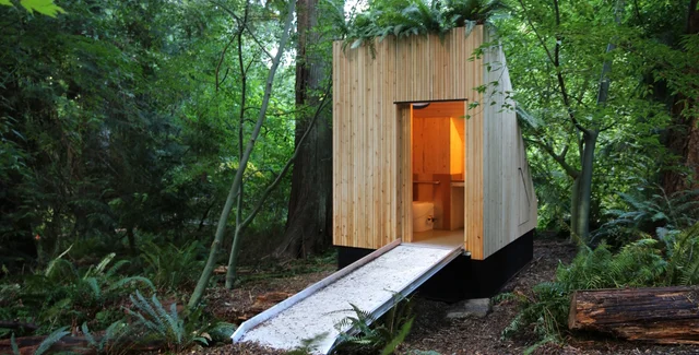 Відомо, що конструкція складається з дерев'яних панелей, обшитих зовні кедровою оббивкою, стійкою до гниття і такою, що володіє антибактеріальними властивостями, зеленим дахом і малопотужним вентилятором для циркуляції повітря. Система біотуалету також відокремлює тверді відходи від рідких: тверді прямують у відсік, покритий міцелієм, де мікроби перетворюють відходи на компост, а гриби усувають неприємні запахи.
