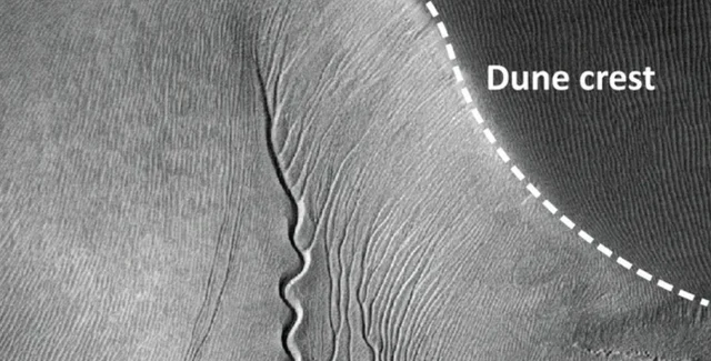 Планетологи давно намагаються пояснити звивисті траншеї, які можна спостерігати на поверхні дюн Червоної планети. Канали виглядають свіжовиритими, з піднятими краями і звивистими стежками. Але відомо, що сучасний Марс надто холодний і сухий, щоб там могла перебувати проточна вода або ж гігантські черв'яки, пише Space.com.