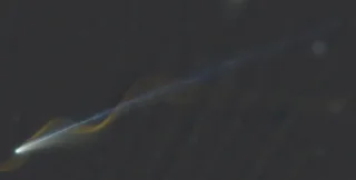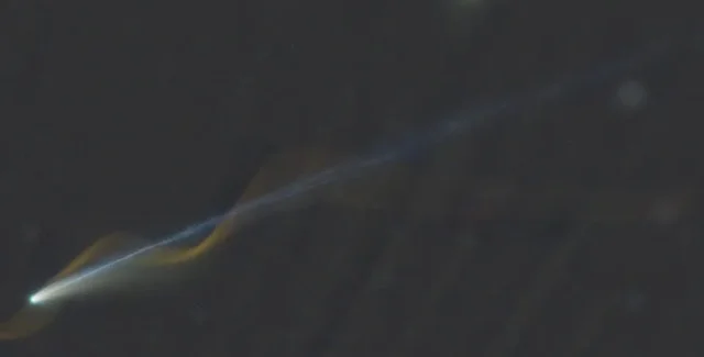 За певних умов ці сліди, що світяться, можуть утворювати спіралі у верхніх шарах атмосфери. Але, незважаючи на те, що здається, що метеорний слід знаходиться дуже близько до комети, насправді він знаходиться досить далеко від її хвоста. Насправді комета перебувала під час зйомки на відстані близько 100 мільйонів кілометрів від Землі.