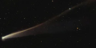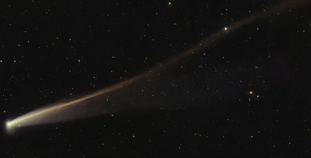 Наприкінці жовтня астрофотограф Ден Бартлетт зробив приголомшливий знімок C/2025 K1. На ньому видно комету, яка не тільки пережила зближення із зіркою, а й набула яскравого золотистого світіння, а також довгого хвоста.
