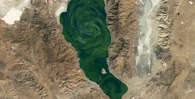 Супутниковий знімок зафіксував надзвичайно активне цвітіння токсичних ціанобактерій у водах озера Пірамід у Неваді. Дослідження показують, що ці водорості цвітуть у водоймі щонайменше останні 9000 років.