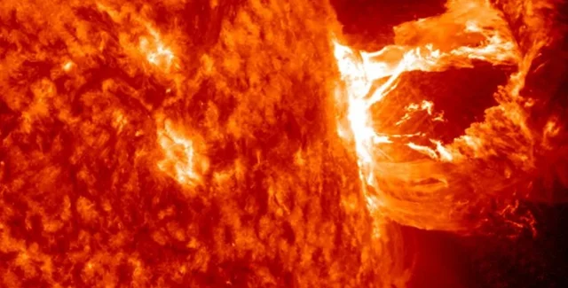 Сонячні плями викликають потужні викиди випромінювання, або сонячні спалахи, коли лінії магнітного поля розриваються і з'єднуються знову, вивільняючи величезну кількість енергії