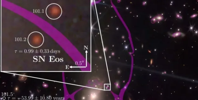 За допомогою космічного телескопа Вебб астрономи отримали зображення наднової типу II. Вона отримала назву "Еос" на честь богині світанку з давньогрецької міфології, адже період історії Всесвіту, коли вона утворилася, часто називають "космічним світанком". Ця наднова може допомогти астрономам краще зрозуміти, як зірки та галактики еволюціонують протягом мільярдів років.