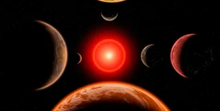 Більшість виявлених кам'янистих планет обертаються навколо менших, холодніших за Сонце зірок, відомих як червоні карлики. Ілюстрація