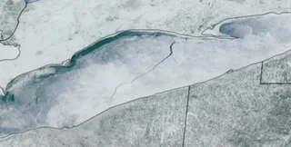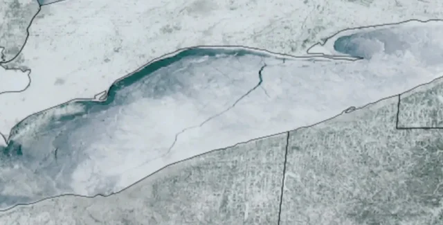 Однак тепер на поверхні водойми починають з'являтися тріщини. Так, у неділю, 8 лютого, метеорологічний супутник NOAA GOES19 зафіксував появу величезної тріщини на люду озера Ері. Знадобилося менше ніж чотири години, щоб величезна тріщина простяглася на 128 кілометрів від Порт-Бервелла, Канада, до іншого боку, недалеко від Клівленда, штат Огайо.