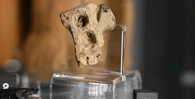 Серед численних знахідок особливу увагу привернув один невеликий глиняний артефакт. Доктор Марцін Бургхардт з Музею в Ярославі Кам'яниця Орсеттіч пояснив, що цей 4,3-сантиметровий предмет має нерівну пірамідальну форму з увігнутими сторонами та зламаною ручкою. Його основа, прикрашена вирізаними лініями та трикутними і круглими виїмками, вказує на практичне, а не суто символічне призначення.