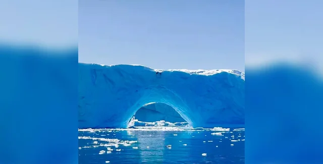 Полярники зафіксували льодовик із природною аркою неподалік станції "Академік Вернадський". Вони також пояснили, що зазвичай це явище утворюється під дією хвиль, теплих течій та атмосферної ерозії і свідчить про поступове руйнування айсберга.