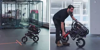 Новий робот, схожий на велосипед, під назвою Ultra Mobility Vehicle створений за зразком руху і балансу людини, що їде на велосипеді, що дає йому змогу зберігати стійкість на двох колесах під час швидкого руху.