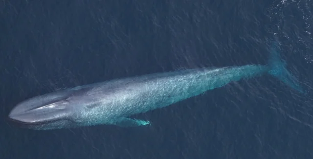 Синій кит, помічений групою аерофотозйомки Акваріума Нової Англії над морською національною пам'яткою "Північно-східні каньйони і підводні гори" 27 лютого 2026 року (ліворуч). Один із двох синіх китів, помічених над водами південної Нової Англії 28 лютого 2026 року (праворуч).