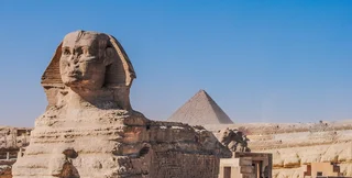 - Великий сфінкс — це монументальна скульптура, висічена з каменю, збудована, як вважається, під час правління фараона Хефрена (близько 2575-2465 роки до н. е.). Вважається, що обличчя Сфінкса відображає обличчя самого фараона.