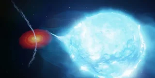 Чорна діра Лебідь Х-1 має величезну гравітацію і постійно відриває від сусідньої зірки її речовину. Ілюстрація