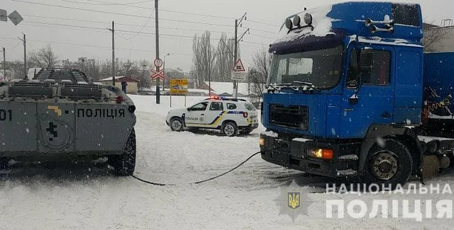 Правоохоронці виїжджають на місця подій, де допомагають водіям витягати транспортні засоби зі снігових заметів і відбуксирувати їх на рівну ділянку дороги.