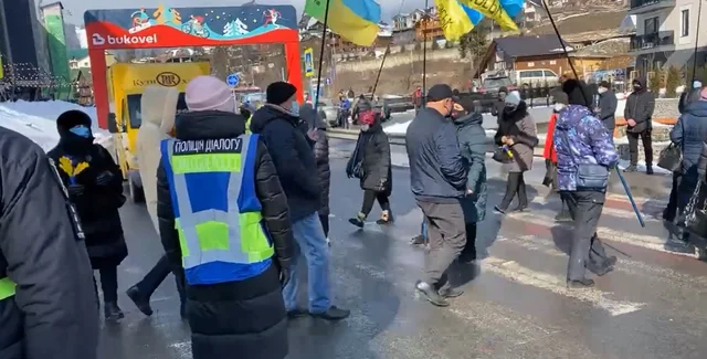 На вʼїзді на курорт "Буковель" представники середнього бізнесу з Івано-Франківська, Калуша, Долини та Коломиї влаштували акцію протесту, передає видання "Галка".